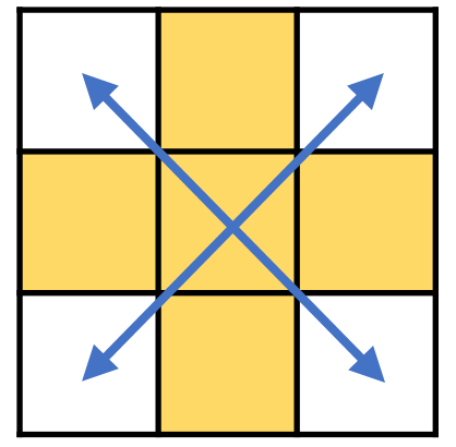 顶面十字过程,只需要观察顶面的棱块即可(角块不关心),所以这一步的示例图就用平面图代替(顶面)。这一步的公式依然只有一个,不过对于不同情况,需要使用 0 ~ 3 次公式进行还原(公式中顶面仍然是T,不过这里只展示顶面平面图)。