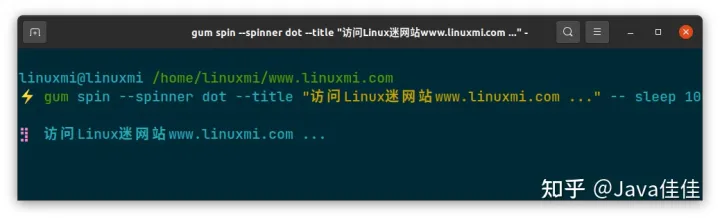 $ gum spin --spinner dot --title "访问Linux迷网站http://www.linuxmi.com ..." -- sleep 10