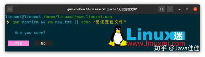 $ gum confirm && rm new.txt || echo "无法定位文件"