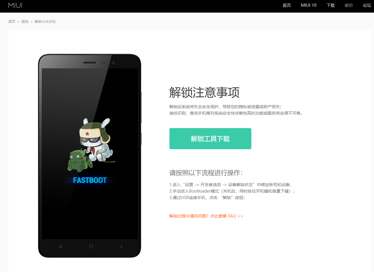点击"解锁工具下载",得到解锁工具包,解压后,双击MiFlashUnlock.exe运行