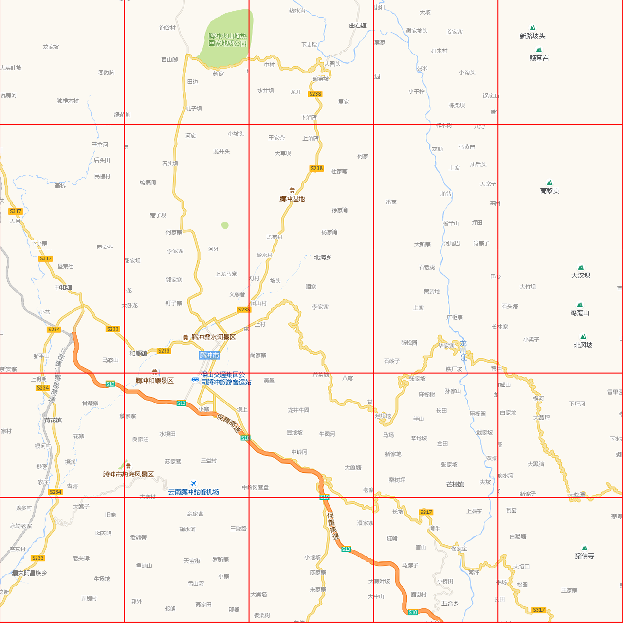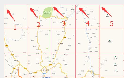 这五个图,分别选择上面这5个对应坐标点(点击方法,前面顺序法切图中说了,不能自作主张乱点击,尤其不能对准十字点击),分别顺序切图,就能在12级以上的地图中正确显示。如果没有选择这几个坐标,就会出现跳图。
