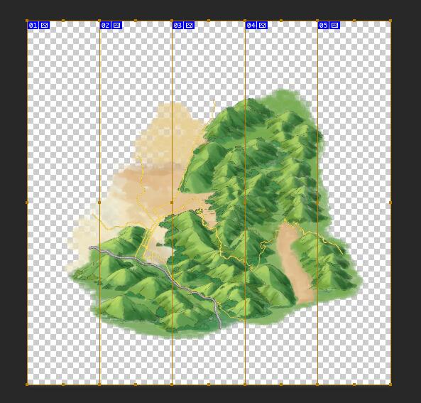 第一种情况,沿着当前级别底图上显示的部分线用Photoshop进行分割。