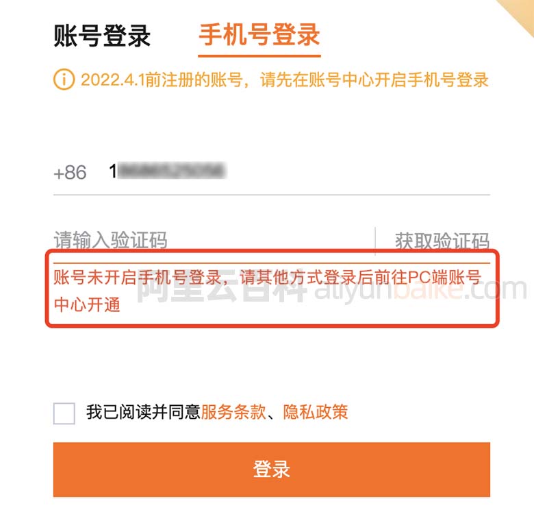 阿里云账号登录支持手机号验证码登录方式,但是如果是2022.4.1前注册的账号,需要先在账号中心开启手机号登录,才可以使用手机号登录。阿里云百科来详细说下阿里云账号开启手机号登录的方法:
