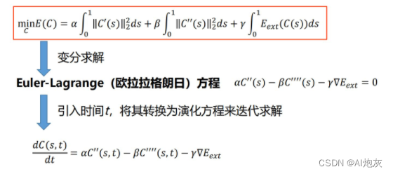 内力(控制光滑性):内力公式中由由曲线的一阶导数(表示曲线的变化)的模,要求很小。以及二阶导(一阶导切线方向形成的曲线,使得二阶导更小,即为让曲线更加的光滑)的模要求很小很小