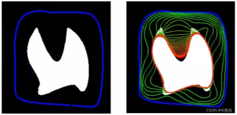 如果初始化的曲线距离目标轮廓很远,这时候就很难收敛到目标的轮廓上,基于此引入了气球力。