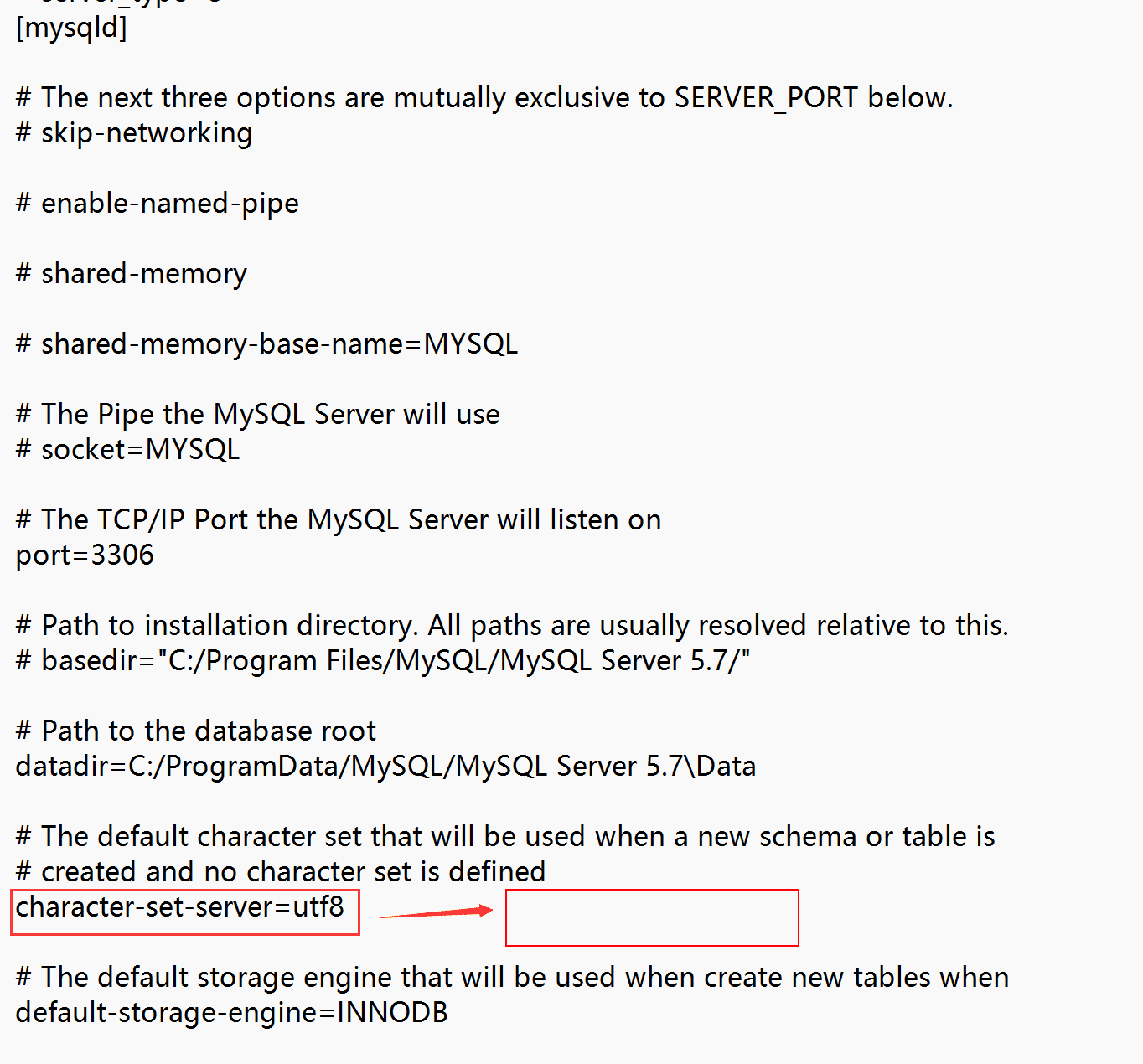 - 修改配置文件, 对之前已经创建好的数据库是没有影响的, 必须删除旧的库, 重新建库建表!