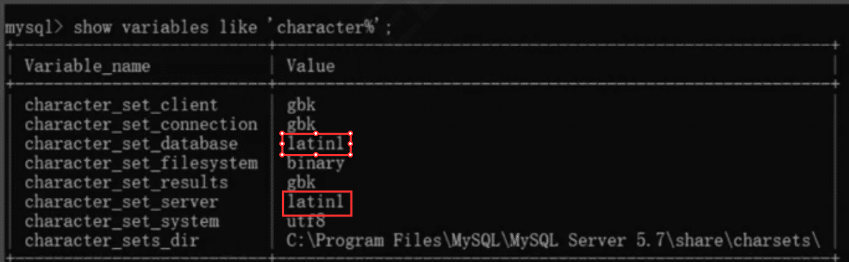 show variables like 'character%';来查询当前数据库的编码方式是哪一种~