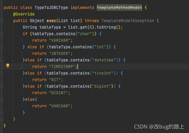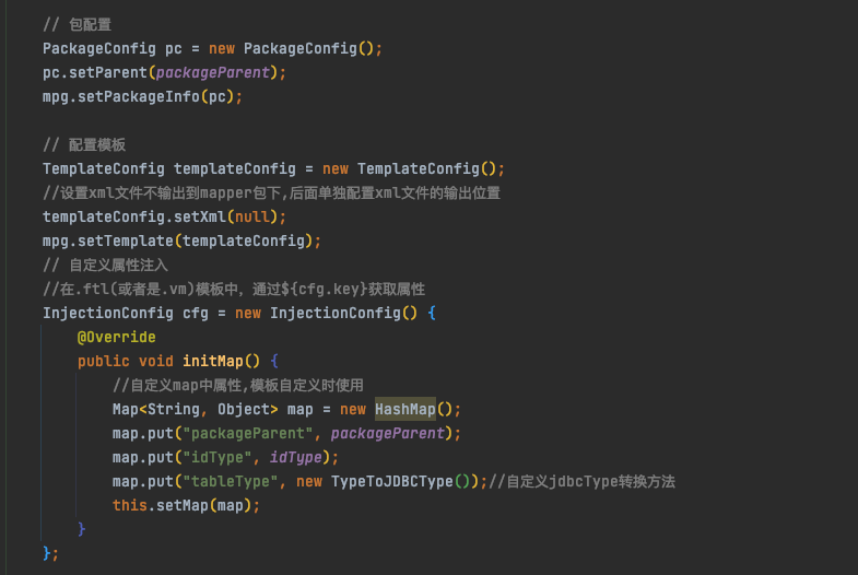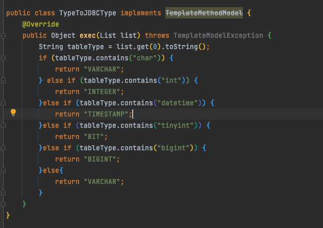 这里自定义属性,是我在生成xml文件的时候,发现生成的result 里面的jdbcType不是我想要的,写了个方法,转换成自己需要的类型,在模板中调用这个方法,就能转换