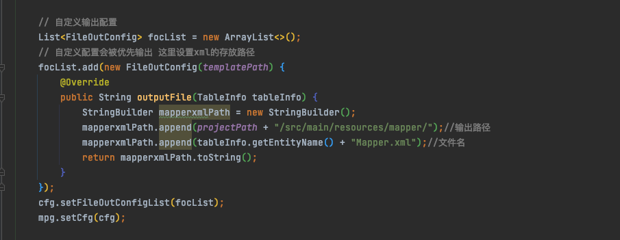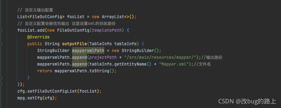这里的自定义输出,xml文件生成以后在文件夹resources/mapper下,不会和java代码在一个地方