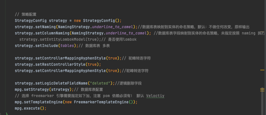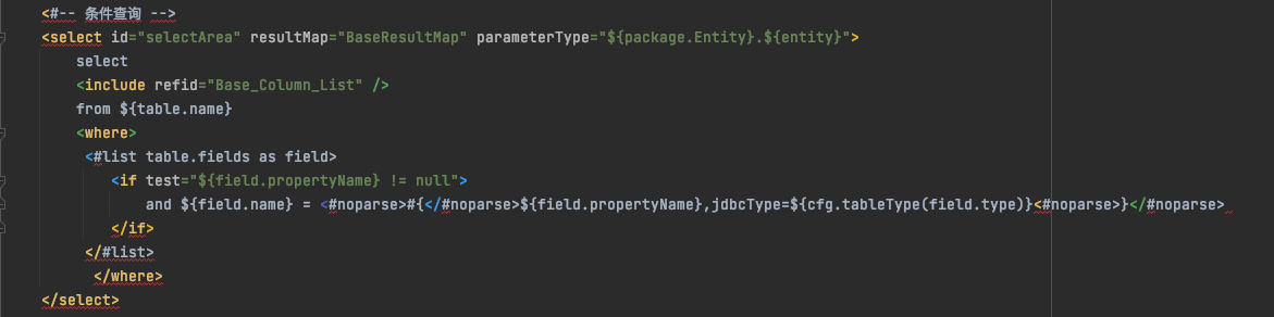 <#if (logicDeleteFieldName!"") == field.name> 这里:logicDeleteFieldName 是代码生成类中 策略配置 设置了的