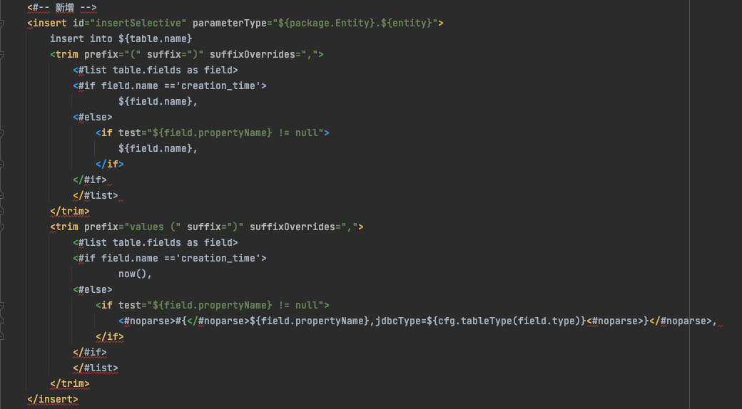 - mapper.xml模板,这里是重点中的重点,我个人花时间最长的