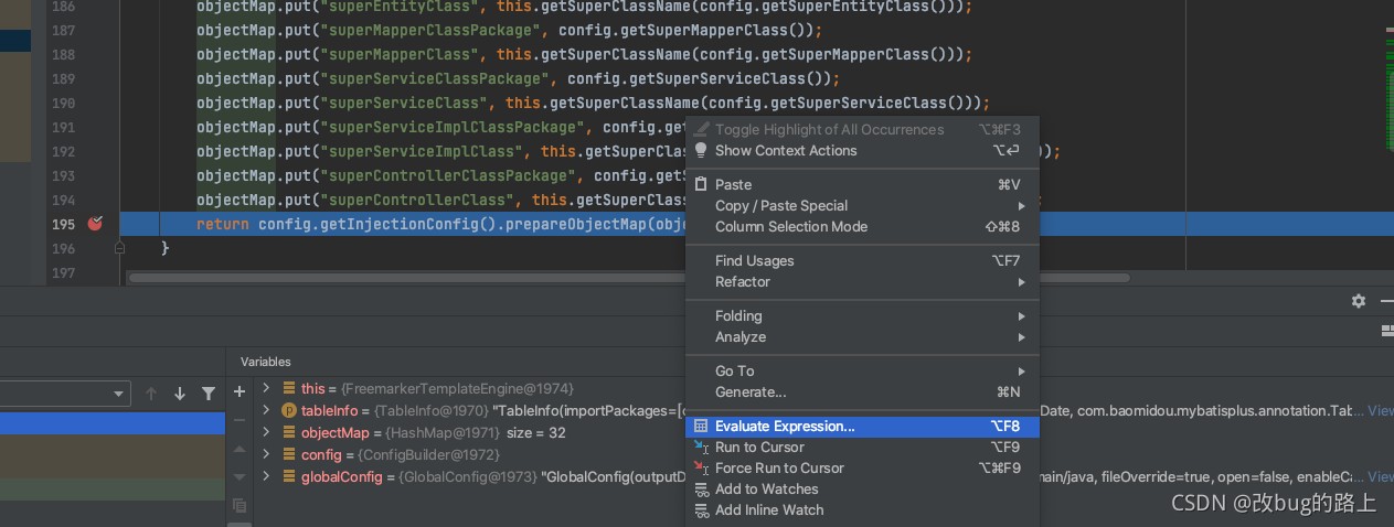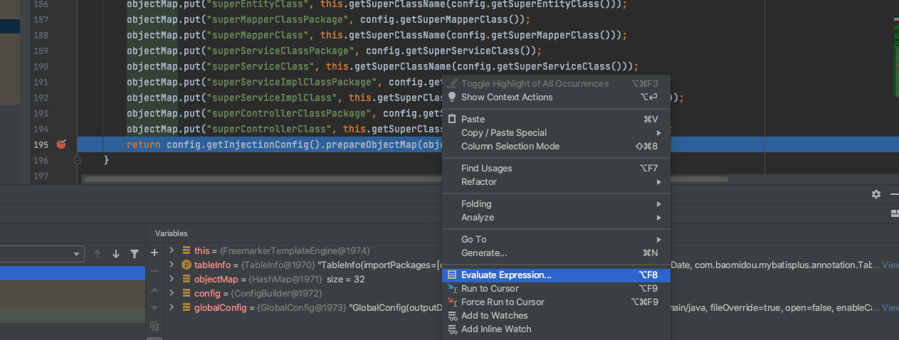 AutoGenerator 类中,找到:AbstractTemplateEngine 类的getObjectMap方法,