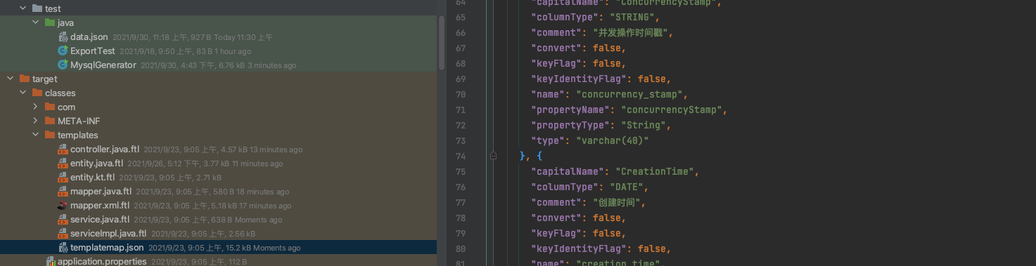 - serviceImpl模板,service模板,entity模板,思路参考controller,这里不描述