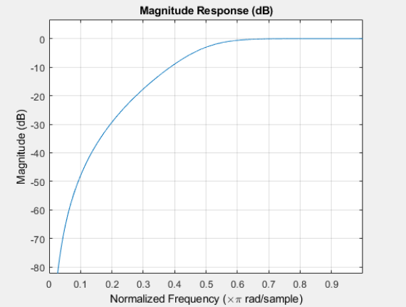 由于参数列表包含采样频率,因此 freqz 返回向量f,其中包含在频率响应计算中使用的 0 到 fs/2 之间的 256 个频率点。