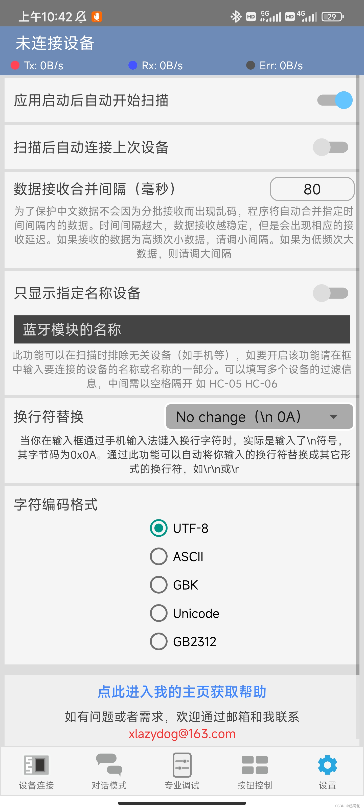 这个蓝牙调试软件可以修改你的字符编码和换行符,根据需要修改。