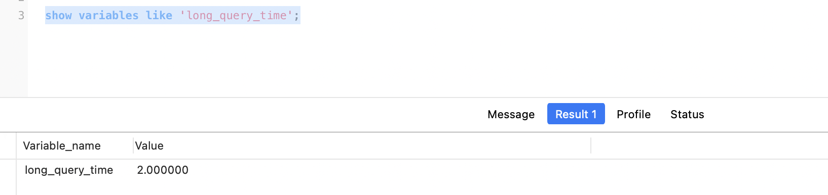 Query OK, 0 rows affected (0.00 sec)mysql> set global long_query_time=2;