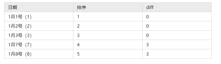 date_sub(date, INTERVAL rank_num DAY) as gap,