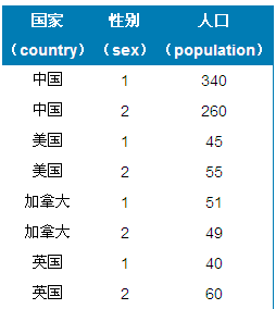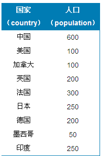 有如下数据:(为了看得更清楚,我并没有使用国家代码,而是直接用国家名作为Primary Key)