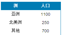 根据这个国家人口数据,统计亚洲和北美洲的人口数量。应该得到下面这个结果。