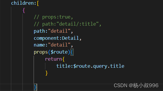 (1)在路由中,props:true。那么路由收到的所有params参数,通过props传给对应的路由组件。