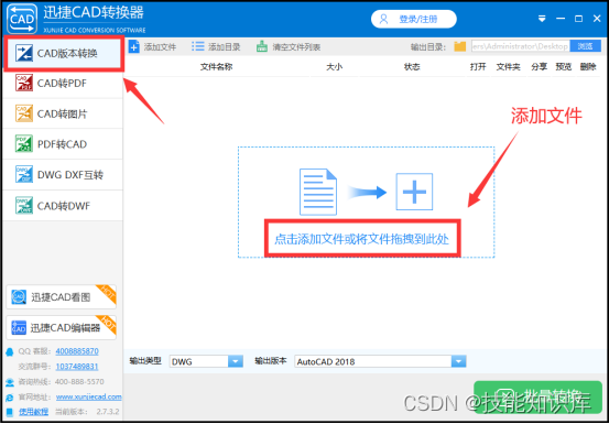 ① 首先,我们进入操作页面就能看到【CAD版本转换】,我们点击后把文件添加进来。
