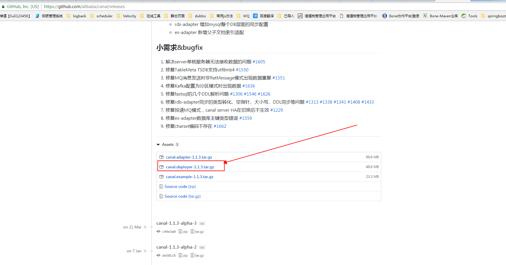 2.下载canel程序 : https://github.com/alibaba/canal/releases