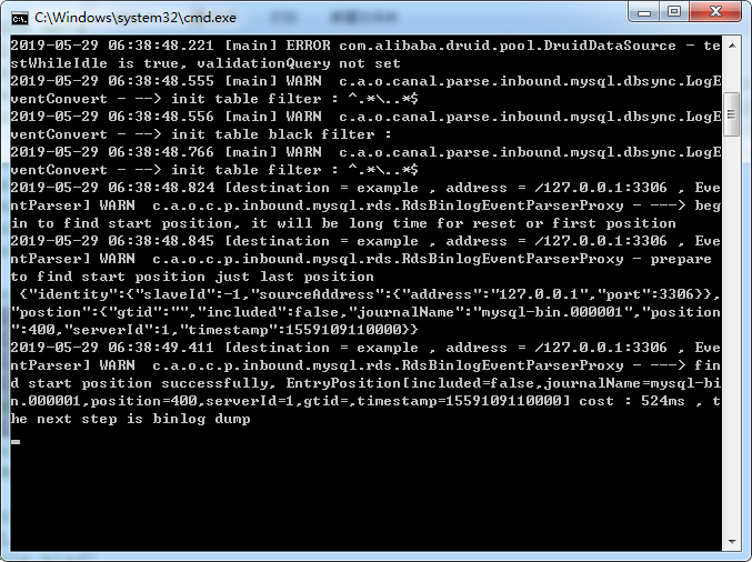 canal.instance.connectionCharset = UTF-8#默认数据库,我自己创建的一个库20190426