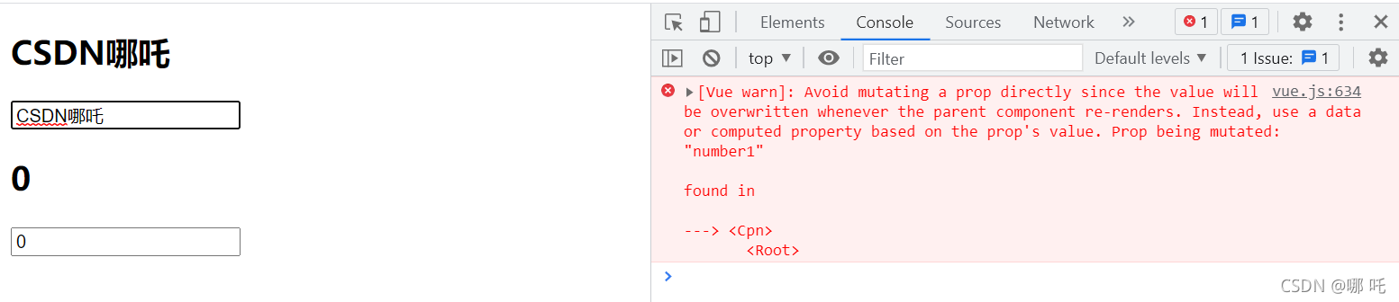 避免直接改变 prop,因为每当父组件重新渲染时,值都会被覆盖。 相反,根据道具的值使用数据或计算属性。 道具被变异:“number1”