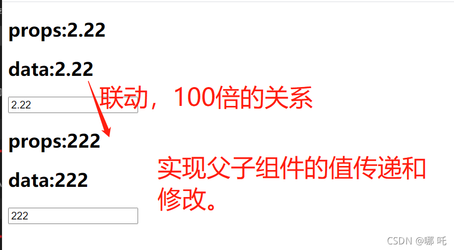 <script>const app = new Vue({el: '#app',data: {num1: 1,num2: 0},methods: {num1change(value) {this.num1 = parseFloat(value)},num2change(value) {this.num2 = parseFloat(value)}},components: {cpn: {template: '#cpn',props: {number1: Number,number2: Number,name: ''},data() {return {dnumber1: this.number1,dnumber2: this.number2}},watch: {dnumber1(newValue) {this.dnumber2 = newValue * 100;this.$emit('num1change', newValue);},dnumber2(newValue) {this.number1 = newValue / 100;this.$emit('num2change', newValue);}}}}})
