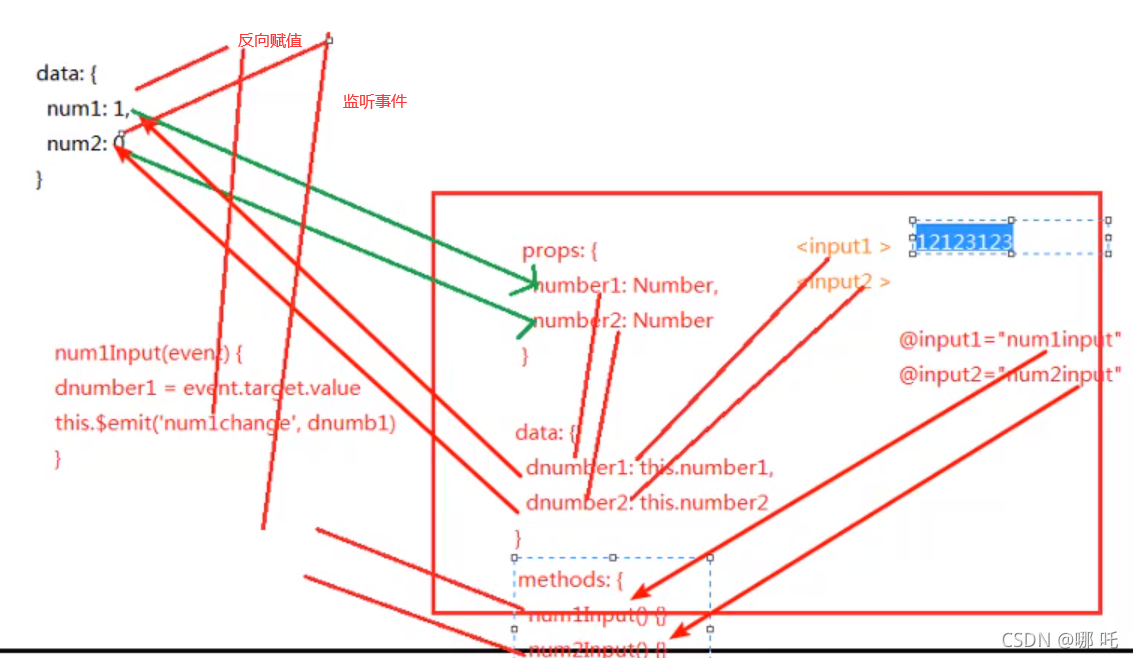 但是,我想通过反向传到父组件中,也就是改变number1的值,也就是改变data中的num1,怎么整?