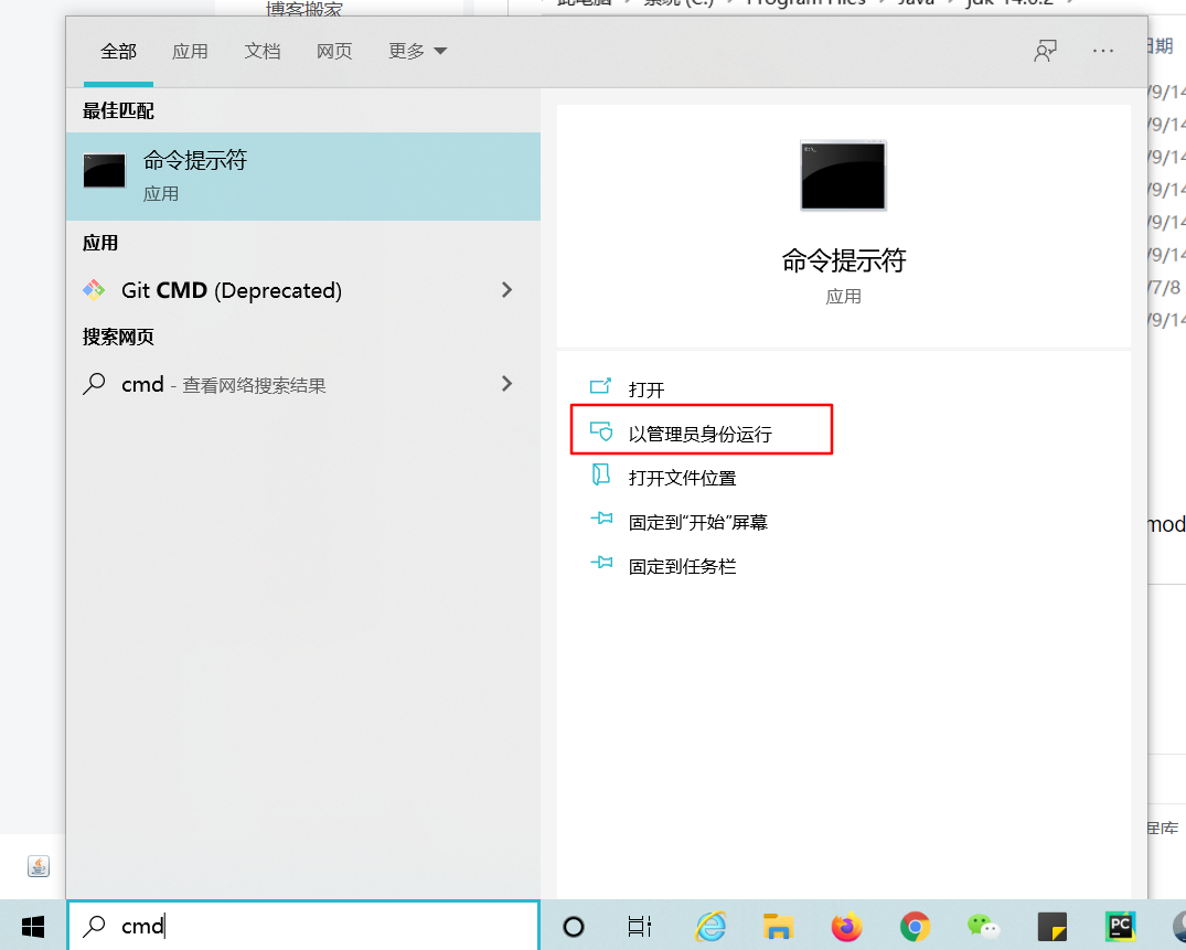 以管理员权限运行cmd命令,进入jdk安装目录,执行命令 :