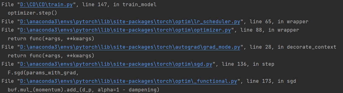 报错位置在optimizer.step()。原因是optimizer加载参数时,tensor默认在CPU上,故需将所有的tensor都放到GPU上。