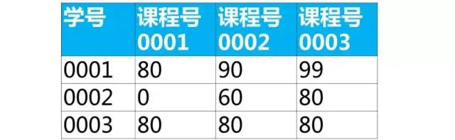 (case 课程号 when '0003' then 成绩 else 0 end) as '课程号0003'