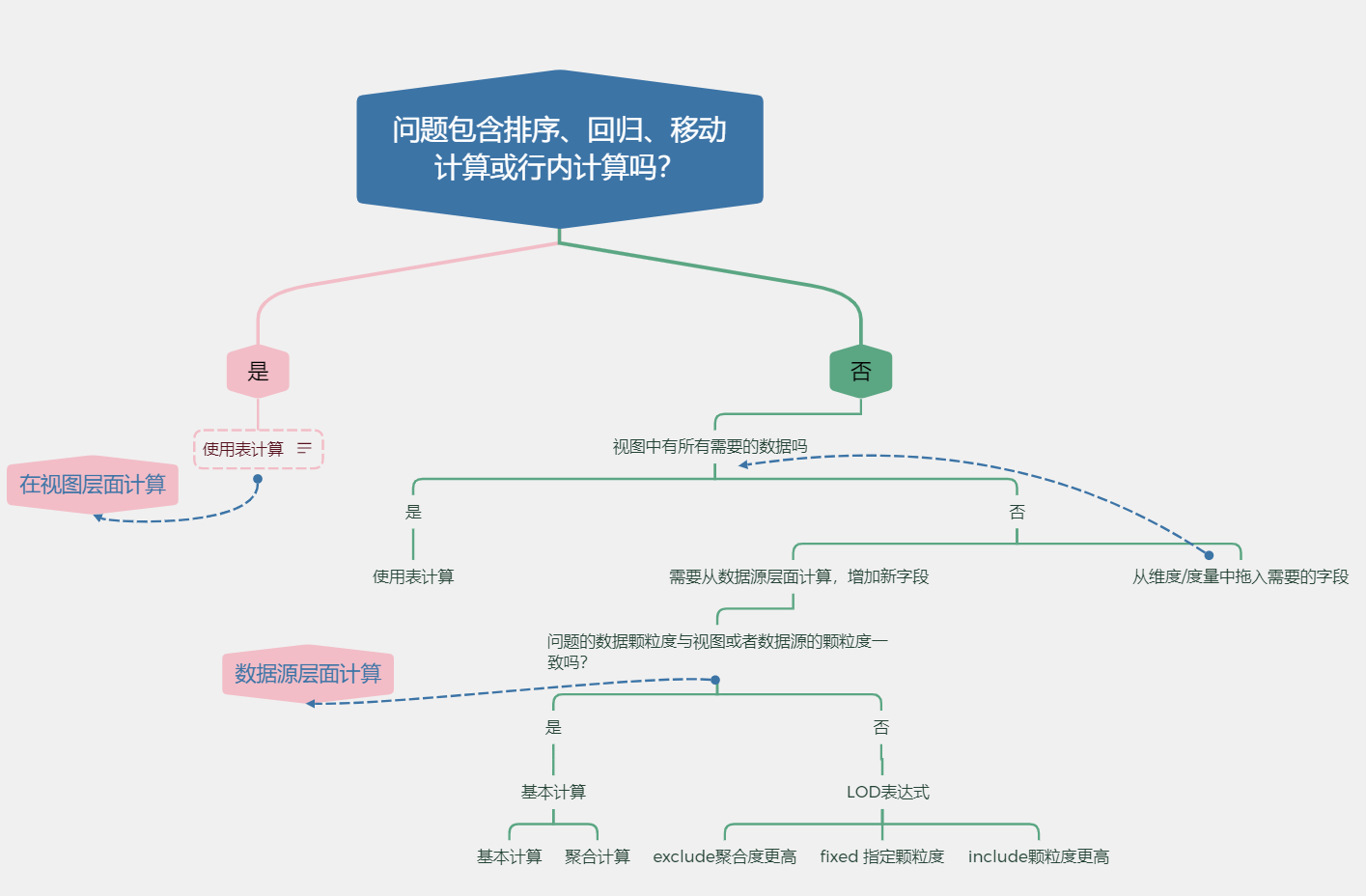 1. 特殊用法、数据齐全,则优先表计算,因为表计算更快,与数据源无关