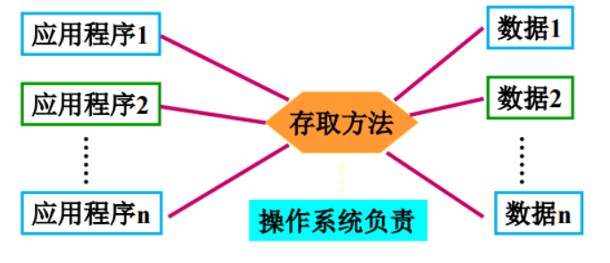 2、文件系统阶段:有大容量外存、文件系统、批处理联机实时处理等处理方式为基础,通过操作系统控制多个应用程序处理多个数据