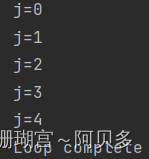 public class Text {public static void main(String[] args) {int i, j;stop:for(i=0; i<10; i++) {for(j=0; j<10; j++) {if (j == 5) {break stop;}System.out.println("j=" + j);}}System.out.println("Loop complete");}
