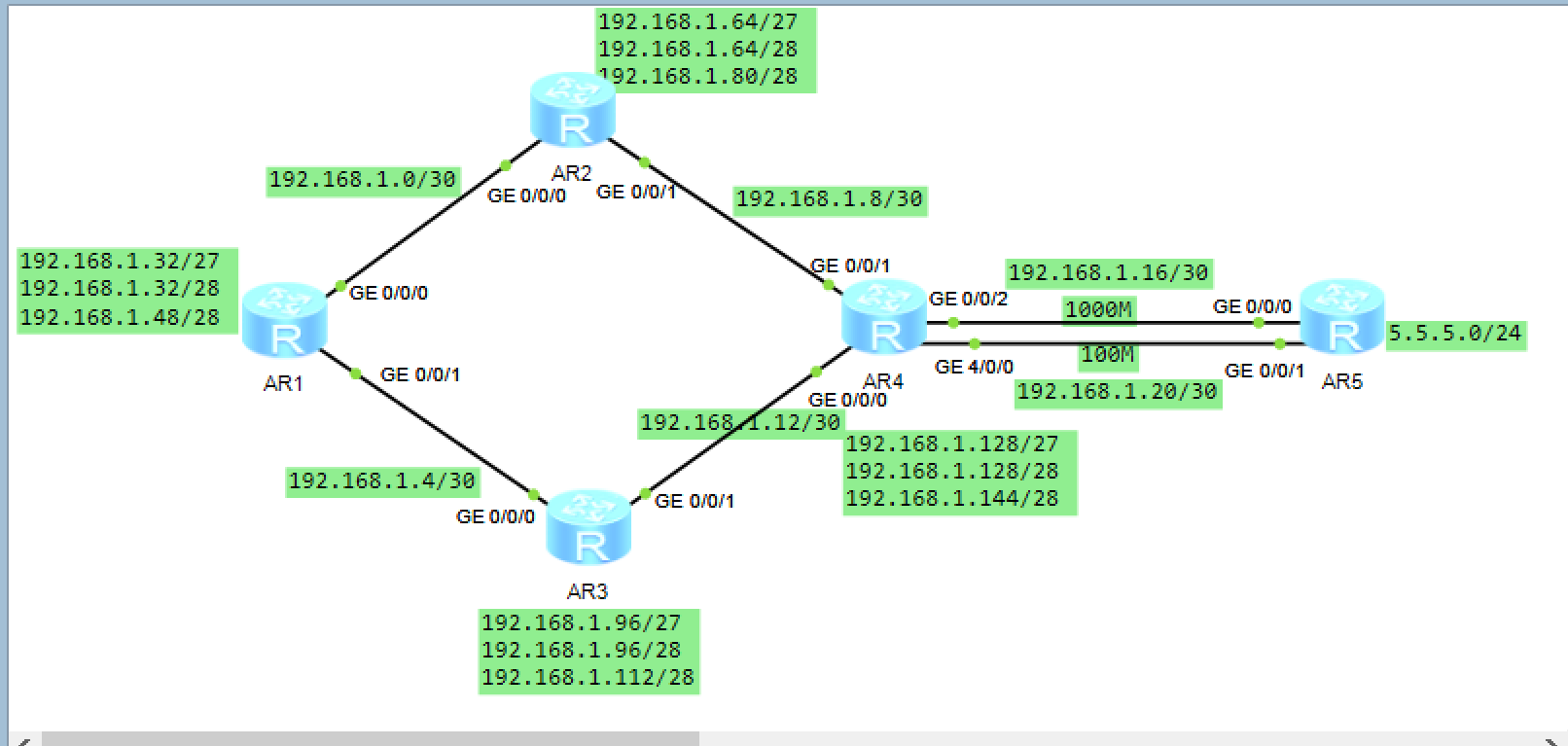[r5]ip route-static 192.168.1.128 27 192.168.1.17
