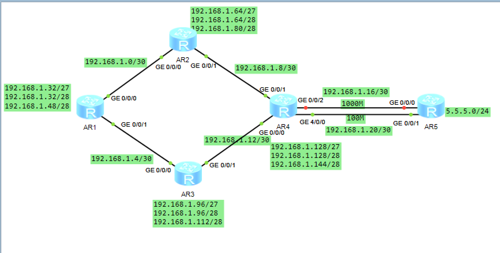 [r5]ip route-static 192.168.1.8 30 192.168.1.17