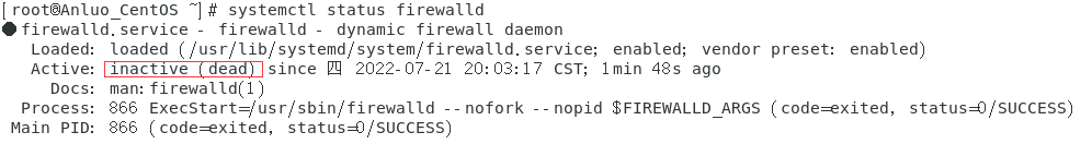显示inactive(dead)表示已经关闭