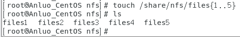 我们使用命令:touch /share/nfs/files{1..5}