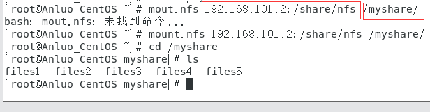 2.输入mount.nfs 192.168.101.2:/share/nfs /myshare