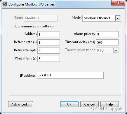 在IP地址字段中输入目标Modbus从站的IP地址。如果您不知道如何确定计算机的IP地址,请参考以下网页:外部链接:如何查找IP信息。在此示例中,我们将Modbus从站与主站运行在同一台计算机上,因此我们使用本地主机IP地址127.0.0.1。