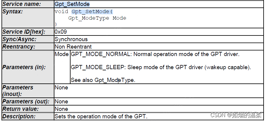 在AUTOSAR MCAL规范中给出了连续计时模式下GPT驱动模块API