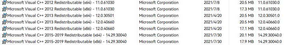 解决方法1(失败):看到错误信息中提示要有Microsoft Visual C++ 14.0或更高版本的支持,检查自己的电脑,已经安装了Microsoft Visual C++ 2015-2019,所以这个解决方案行不通。