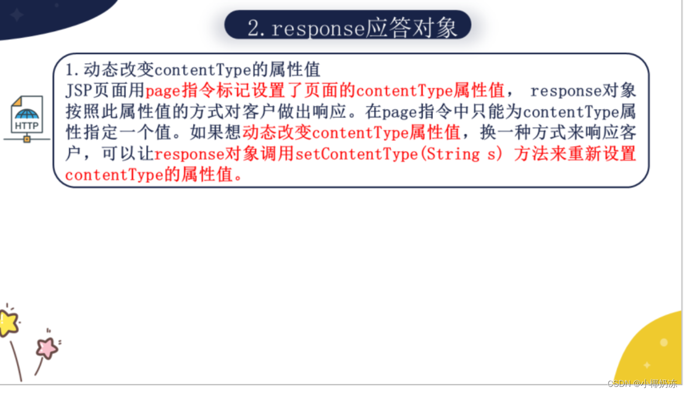 设置源文件的类型和字符编码当不设contentType时也可以设置响应和输出的文档文本类型和字符编码。