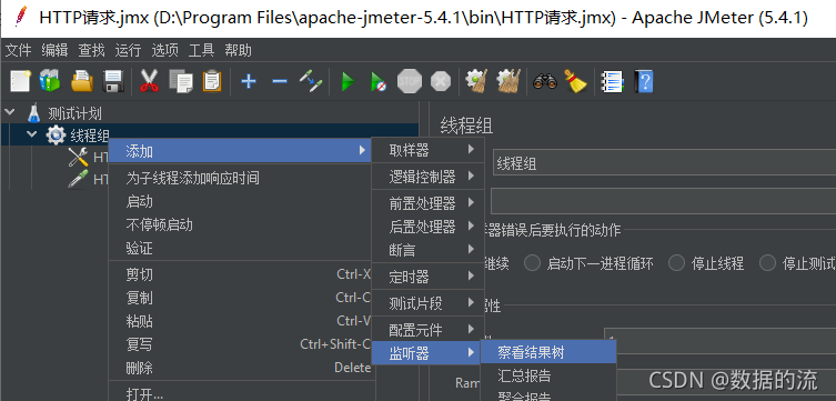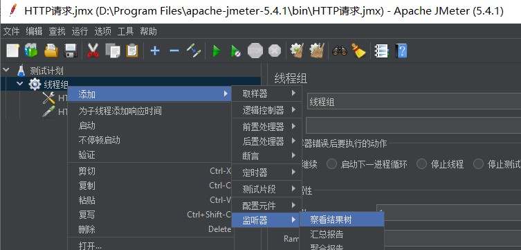 察看结果树用于查看所执行的http请求的请求内容和相应结果