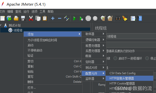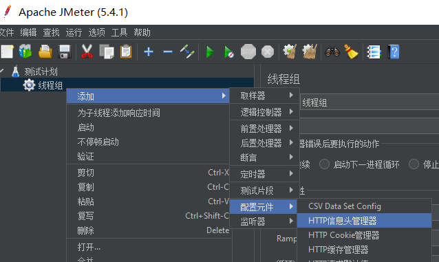 “HTTP信息头管理器”,即为http请求配置Header信息,比如指定请求的“Content-type”、Token等信息。