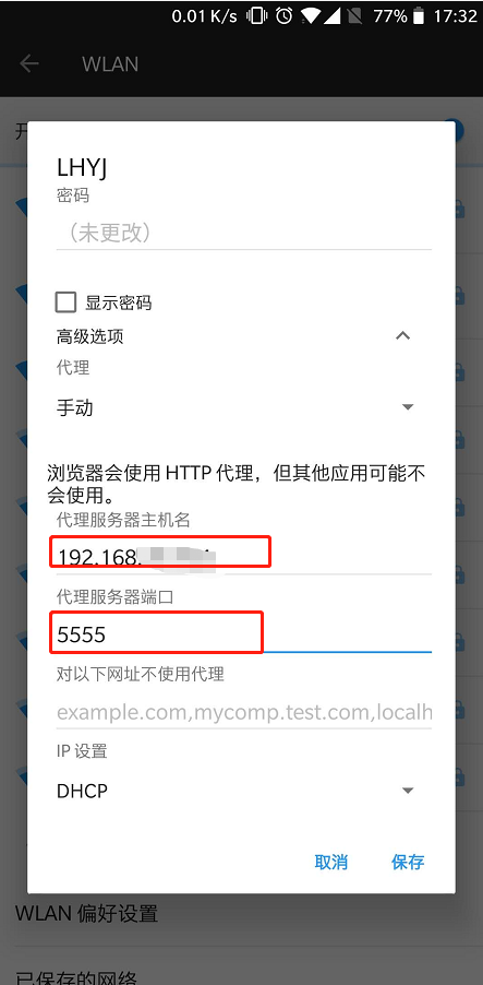 一、手机和电脑连接同一网络,查看电脑连接网络的IP,配置手机的代理