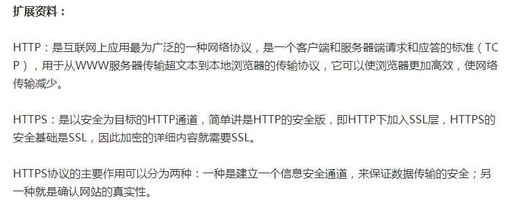 http的连接很简单,是无状态的;HTTPS协议是由SSL+HTTP协议构建的可进行加密传输、身份认证的网络协议,比http协议安全。
