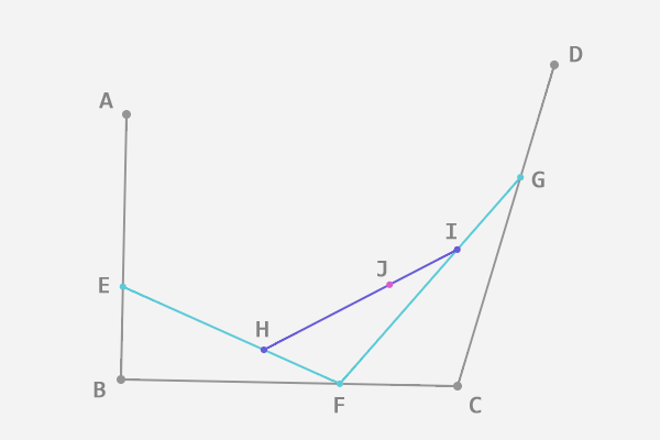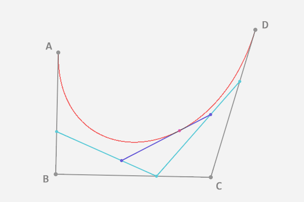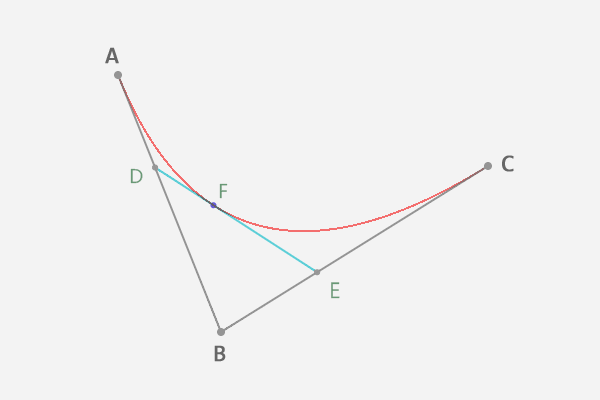 - 在P0P1上的点是A,在P1P2上的点是B,在AB上的点是C,C也就是曲线上的一点。